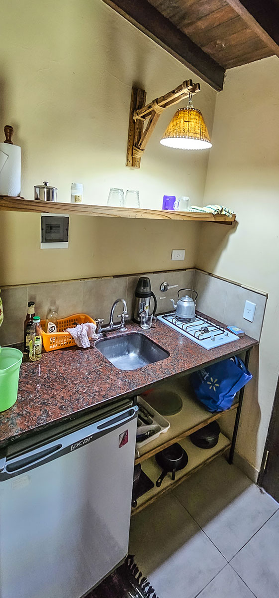 – Espacio para cocinar, con anafe y heladera bajo mesada